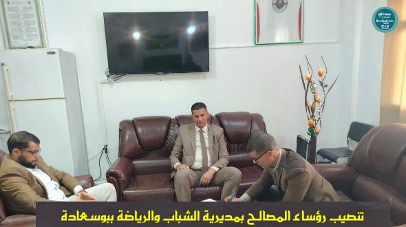 تمّ صبيحة اليوم الأحد 09 نوفمبر 2025، وبإشراف المدير المنتدب للشباب والرياضة ببوسعادة السيد عبد الله عاشور، وبحضور عددٍ من إطارات القطاع، تنصيب رؤساء المصالح الجديدة على مستوى المديرية.