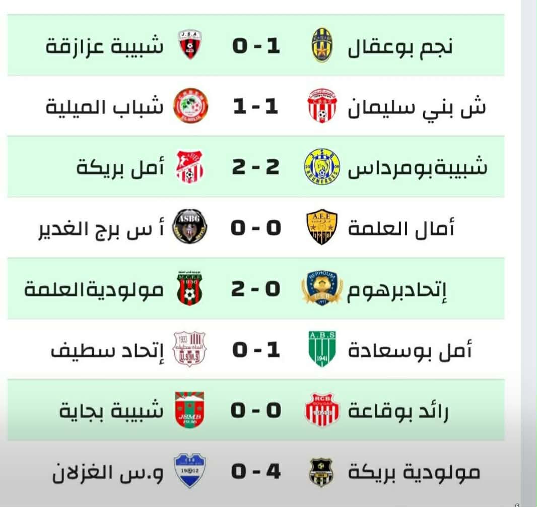 حقق فريق أمل بوسعادة فوزًا ثمينًا على حساب اتحاد سطيف بهدف دون رد، في المباراة التي احتضنها ملعب مختار عبد اللطيف ببوسعادة، لحساب الجولة الثانية عشرة من بطولة ما بين الرابطات، في لقاء اتسم بالندية والتنافس رغم الحضور الجماهيري الضعيف والمدرجات شبه الفارغة.