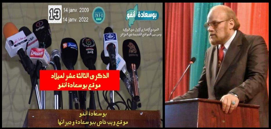 لك الحمد والشكر يا رب وهاهي الذكري الثالثة عشر لموقع ( بوسعادة انفو ) يرن جرس ذكري ميلاده .فيحيي لنا ذكري وجوده من خلال هذا العالم الافتراضي حيث نلحظ .ونري أن هذا الموقع ما زال مستمرا في طريق التقدم ليأخذ بأيدي مثقفي أهل المدينة وما جاورها نحو اعتناق